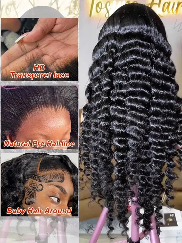 30 40 Inch Loose Wave 13x6 HD Lace Front Human Hair Wigs Deep Wave Curly 13x7 Lace Frontal Wig 200 Density Brazilian Remy Raw