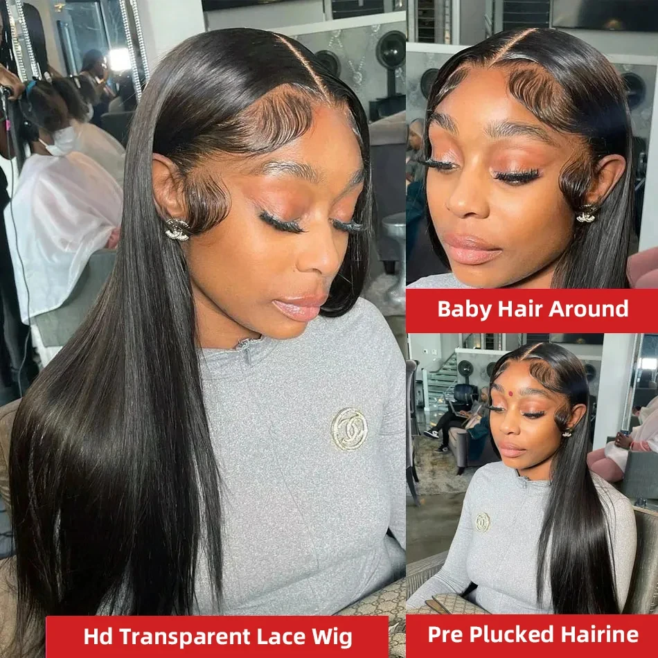 360 Lace Frontal Wig Brazilian Bone Straight 13x4 Transparent Lace Front Human Hair Wigs For Black Women Pre Plucked Bling