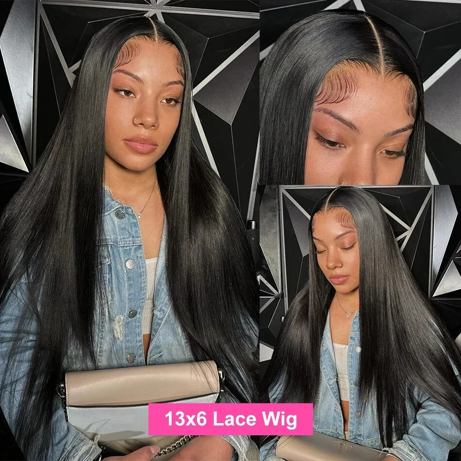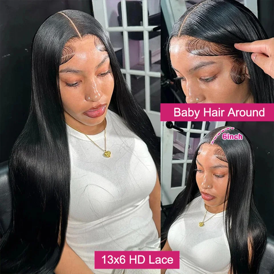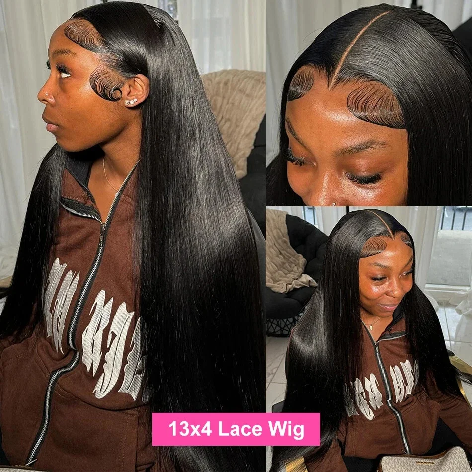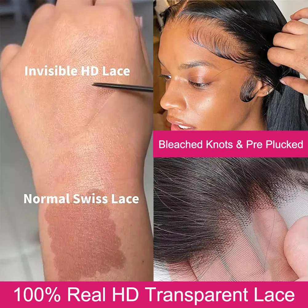 40Inch 13X6 Hd Lace Frontal Wig 250% Density Brazilian Straight 13X4 Lace Front Human Hair Wigs Natural Hairline Bleached Knots