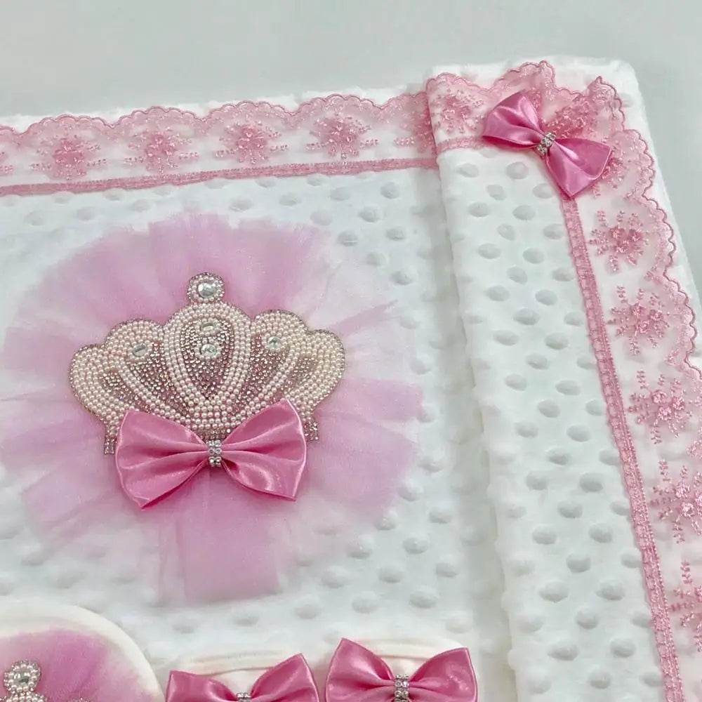 Our 5 pieces set is made up of soft, thick cotton. They are embellished with rhinestone buttons, crown jewels and bows.