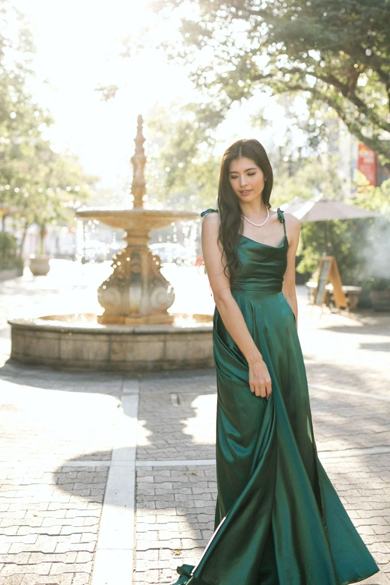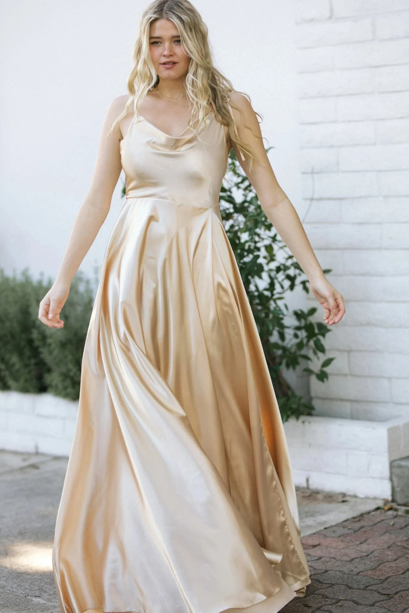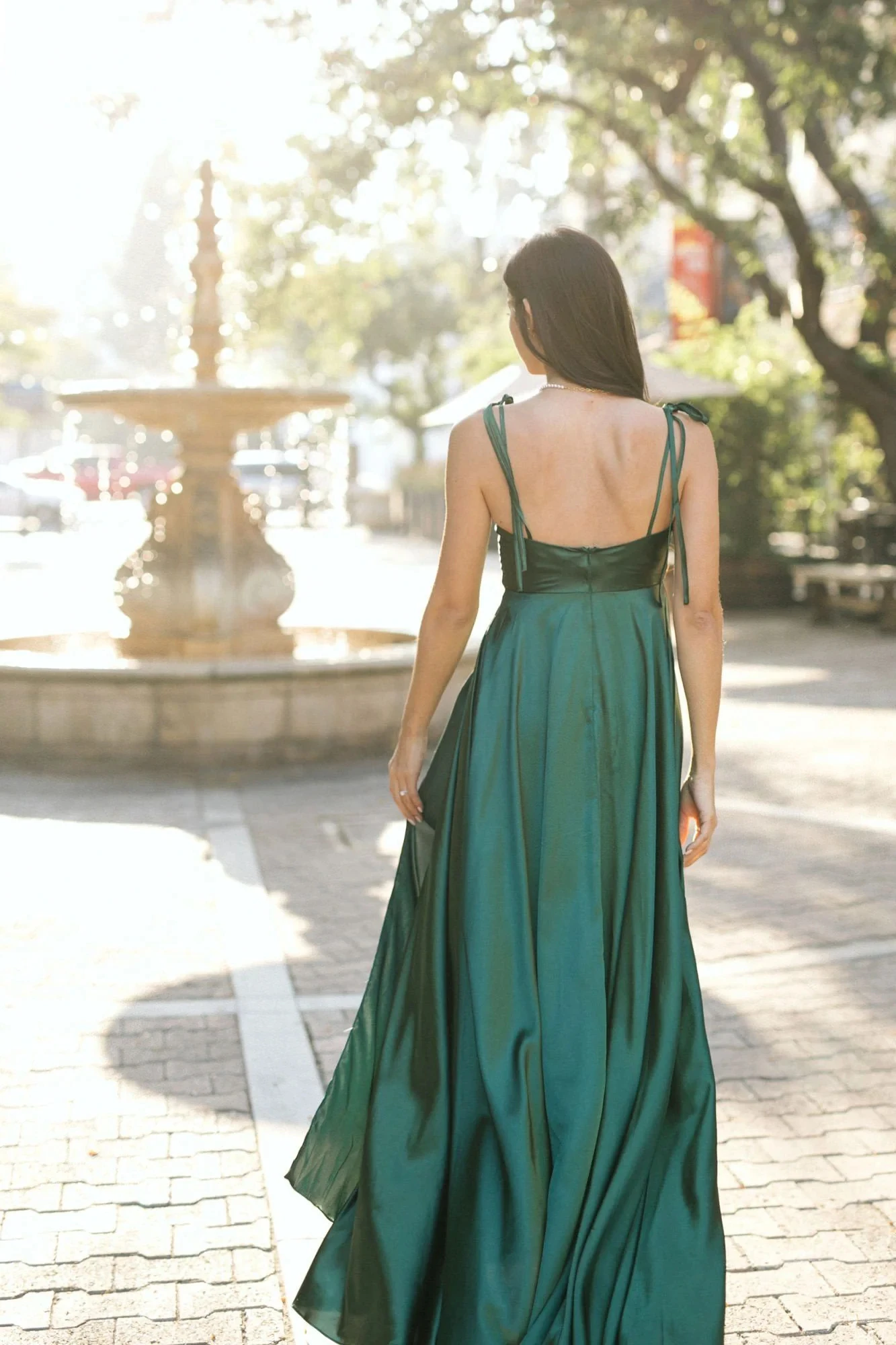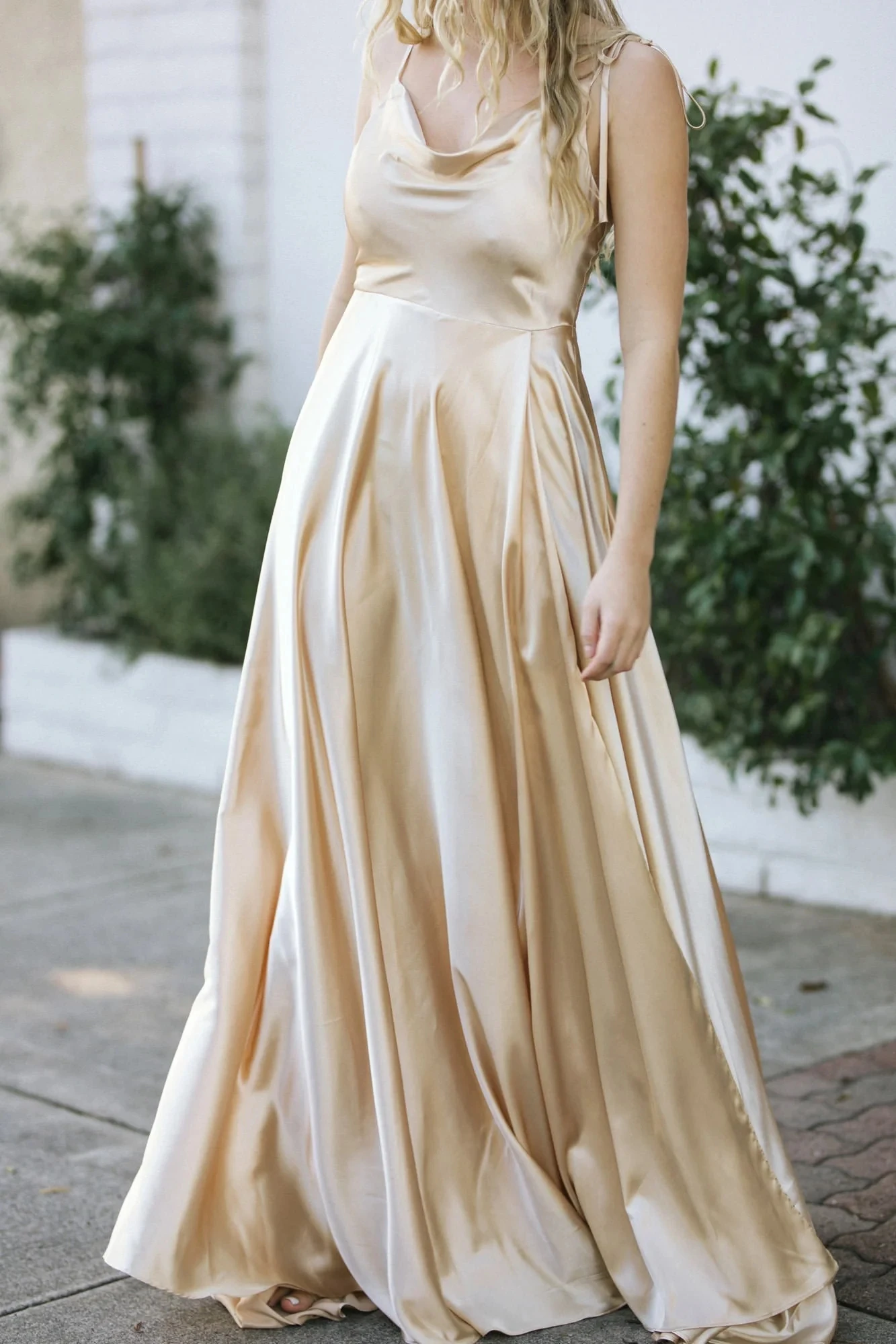 BABYONLINE Prom Dress Satin A-line Gown with Strappy Lace Up Back and High Skirt Slit Floor Length Wedding Bridesmaid Dresses