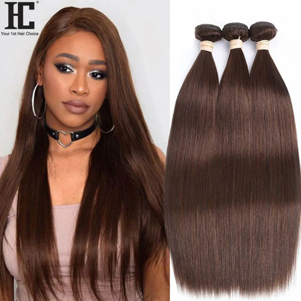 Color #4 Chocolate Brown Straight Human Hair Bundles Brown Bundles Human Hair 1/3 Bundles Dark Brown Straight Bundles
