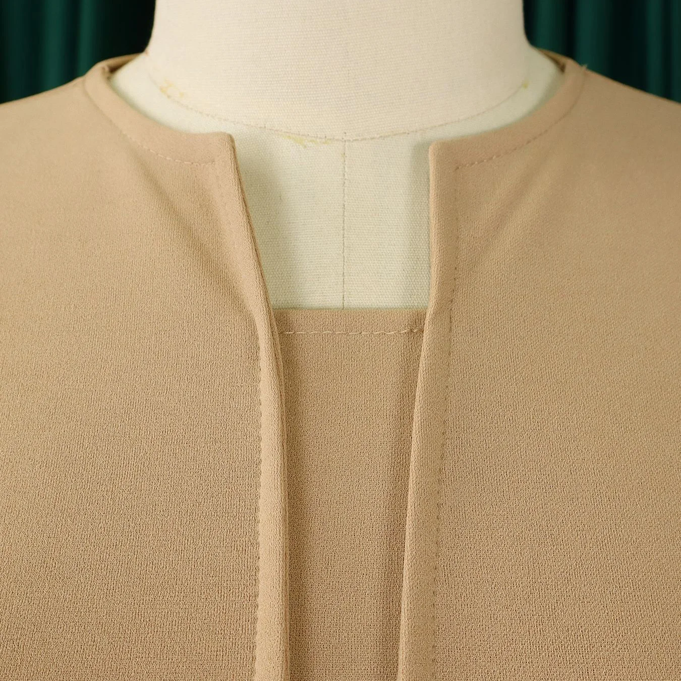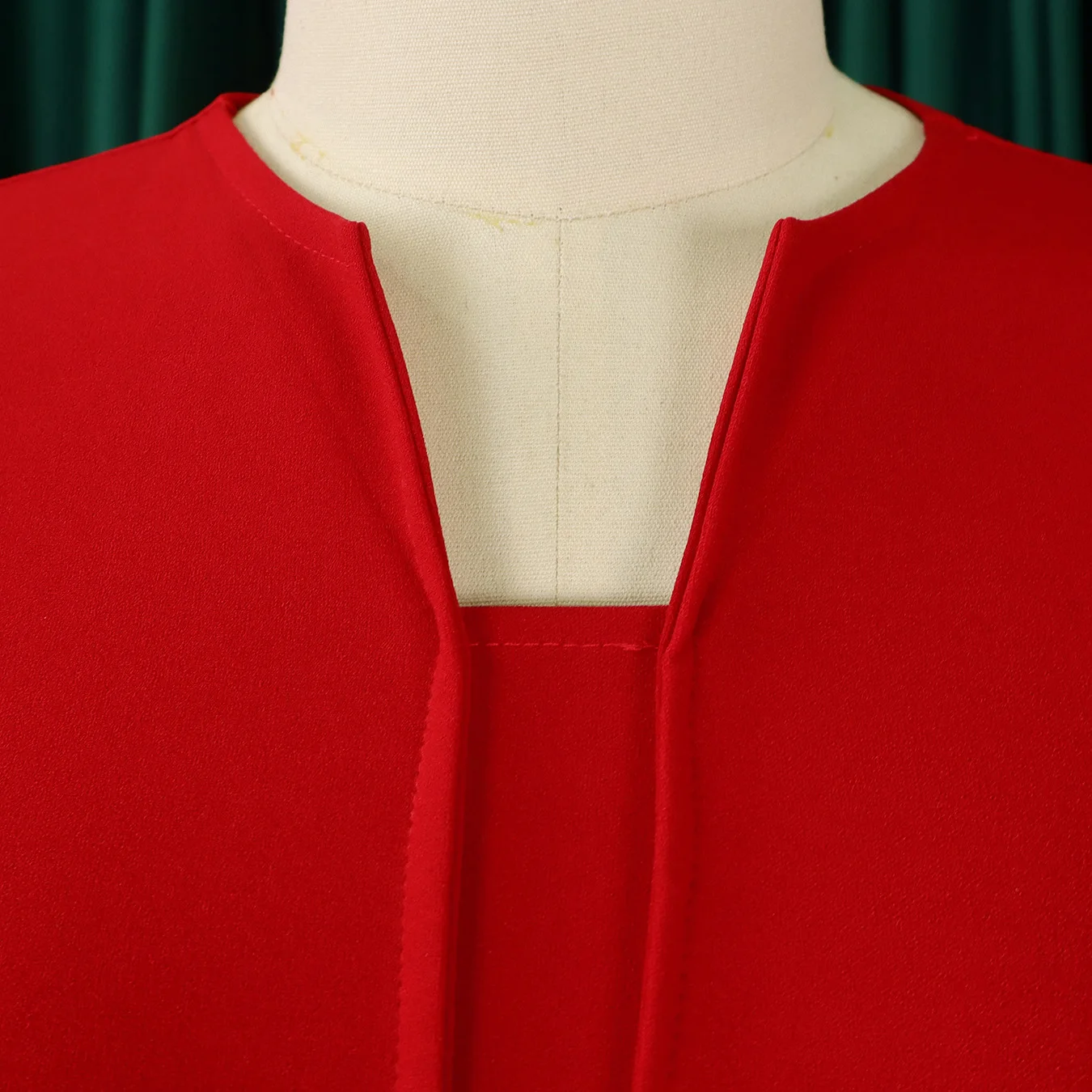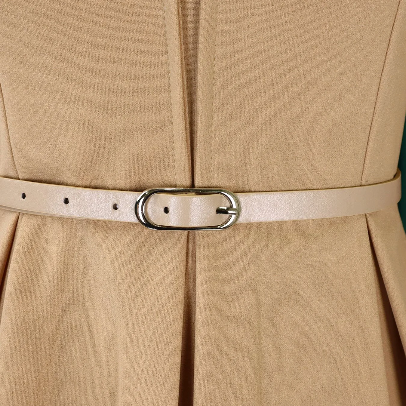 Elegant Office Dress for Women Professional 2024 New V Neck Three Quarter Sleeve Belt Waisted Mid Calf Formal Business Work Robe