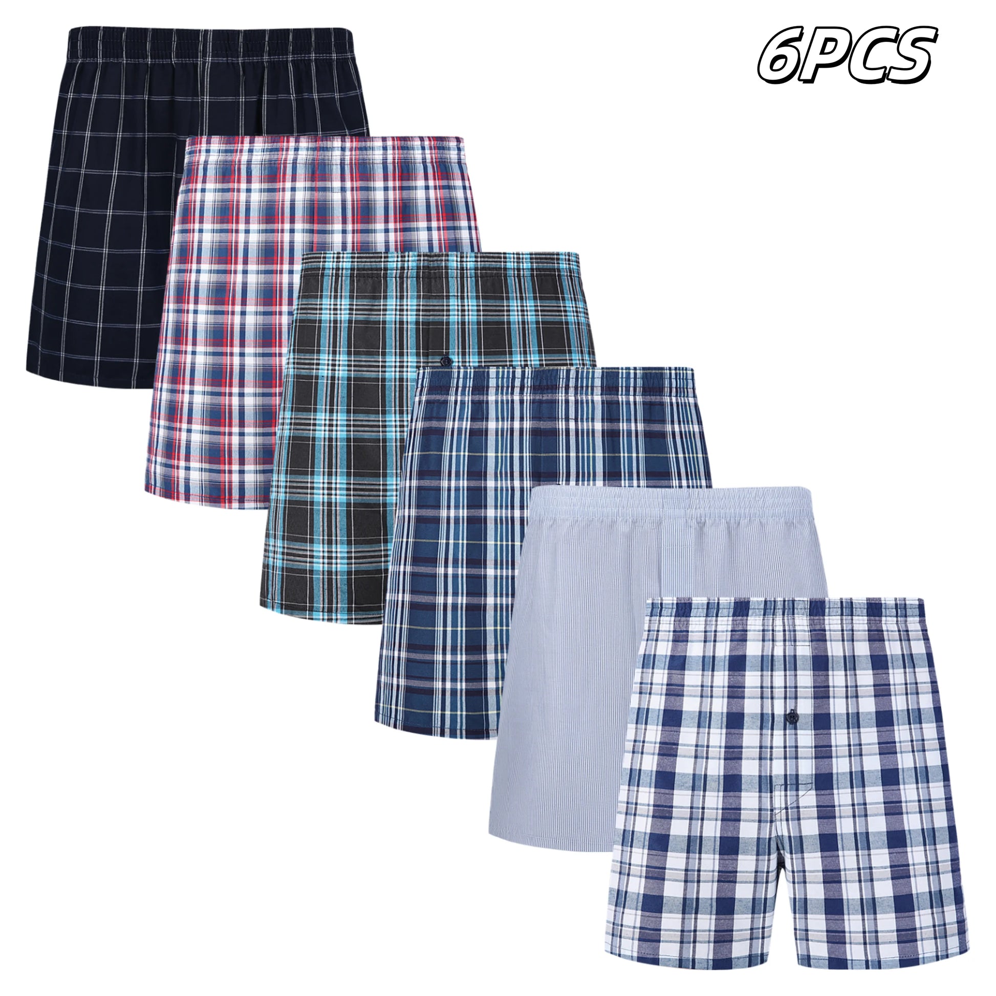 JupiterSecret 6 Pcs Boxer Shorts Casual Plaid Elastic Waistband Button Mens Boxer Underwear Woven Shorts For Home Random Color