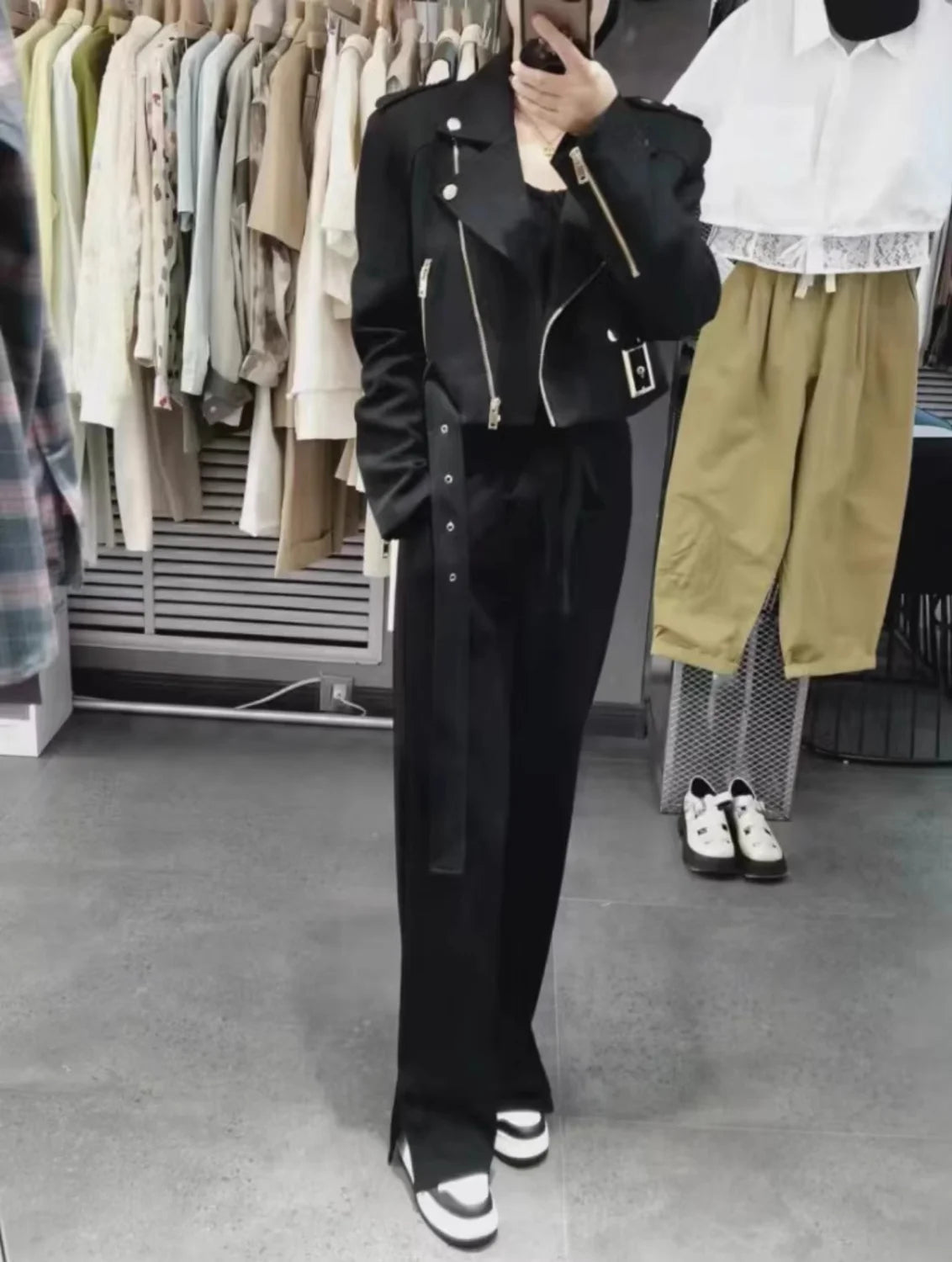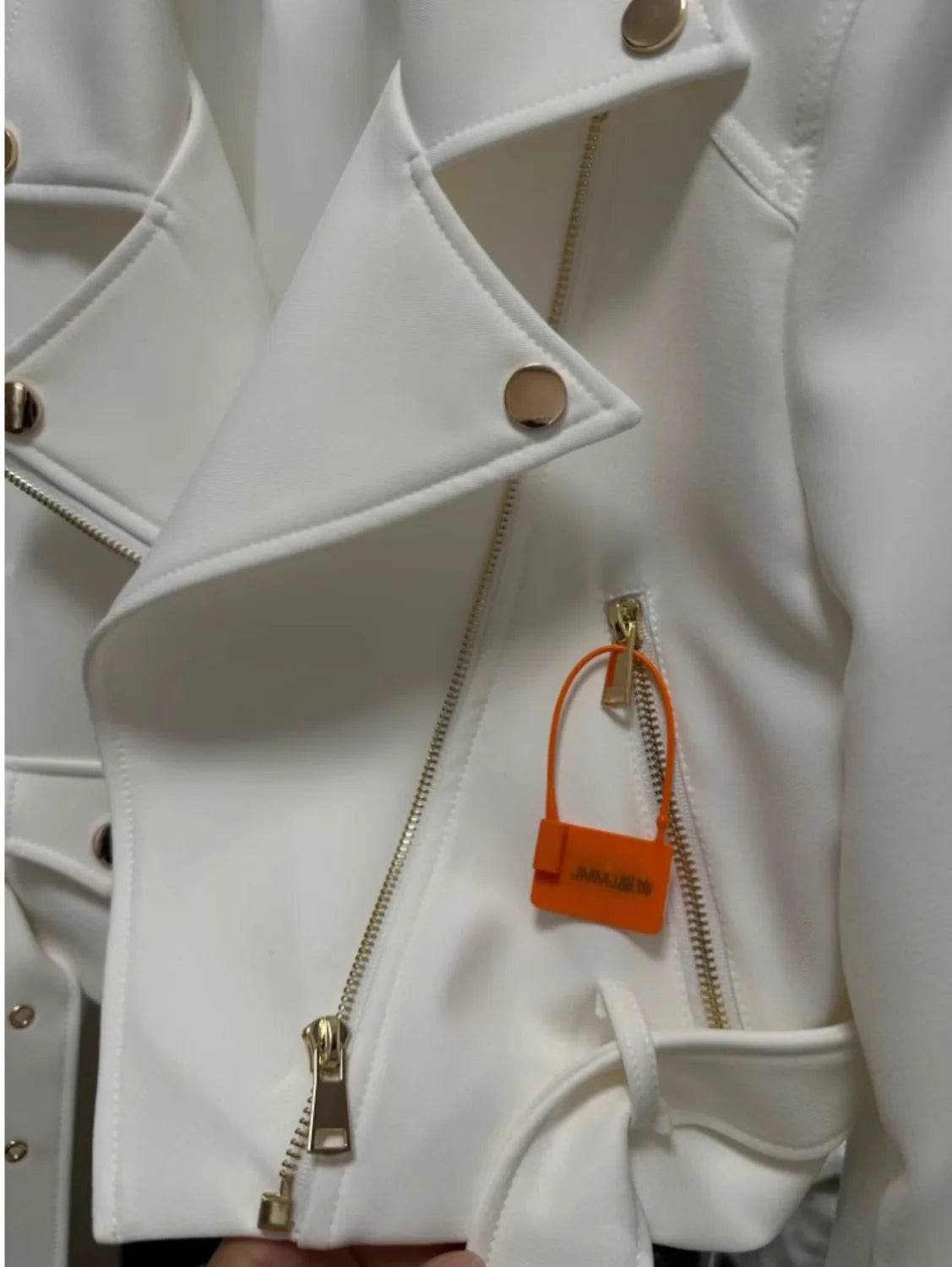 Korean version of the long-sleeved motorcycle jacket jacket women's spring and autumn new fashion temperament Joker suit collar