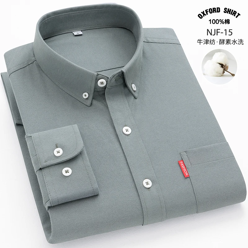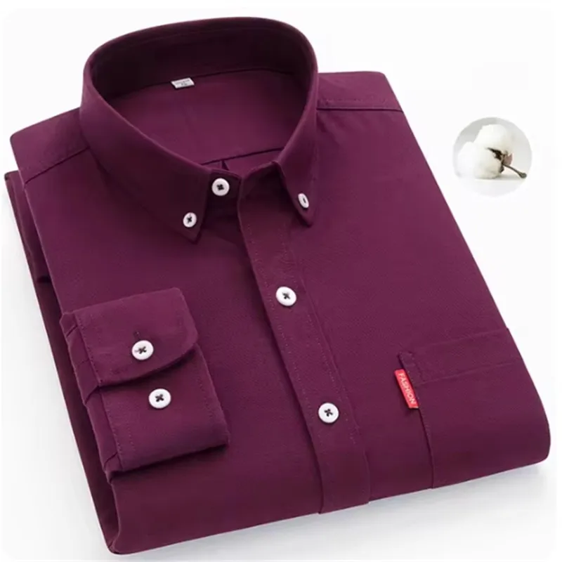 Men's Oxford Long Sleeve Shirts 100% Cotton Solid Color Turn Down Collar Regular Fit Daily Men Clothing Button-down Shirts 5XL