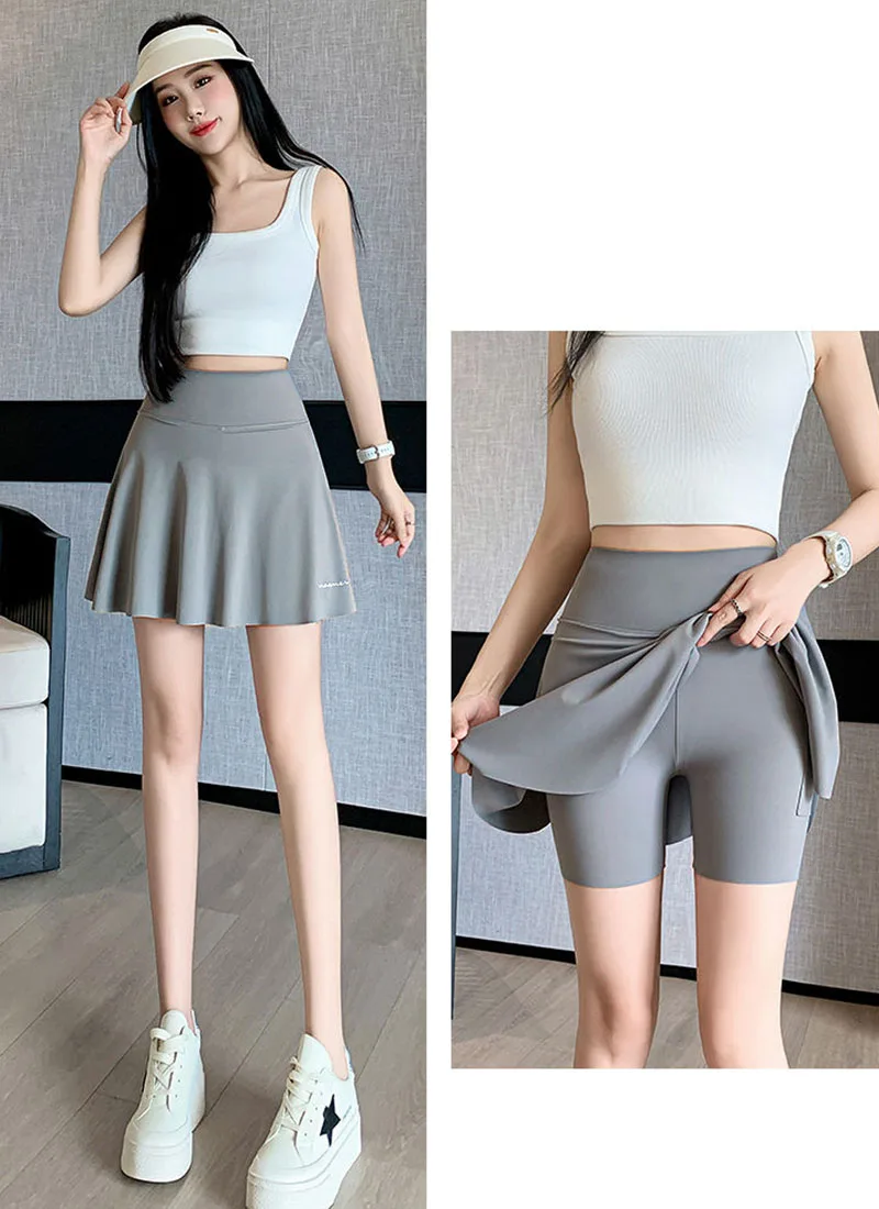 New Fake Two Piece Yoga Shorts Skirts Women Quick Drying Cycling Workout Gym Skirt High Waist Fitness Tight Anti-glare Skirt