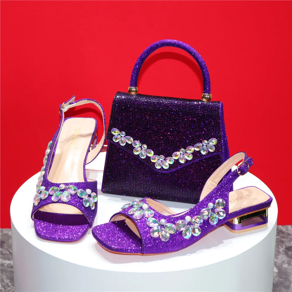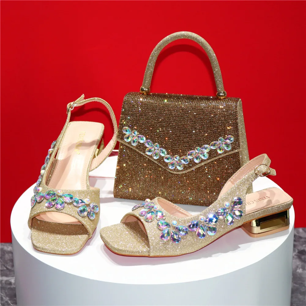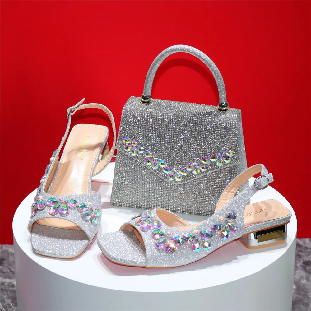 New INS High-Heeled Fish Beaked Toe Cap Wedding Shoes Colorful Full Diamond Design Shoe and Bag Set for Nigeria Party
