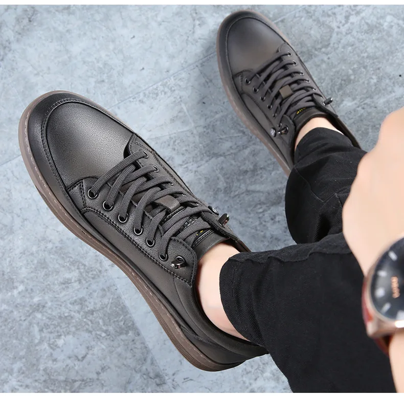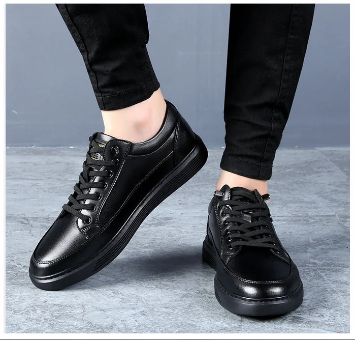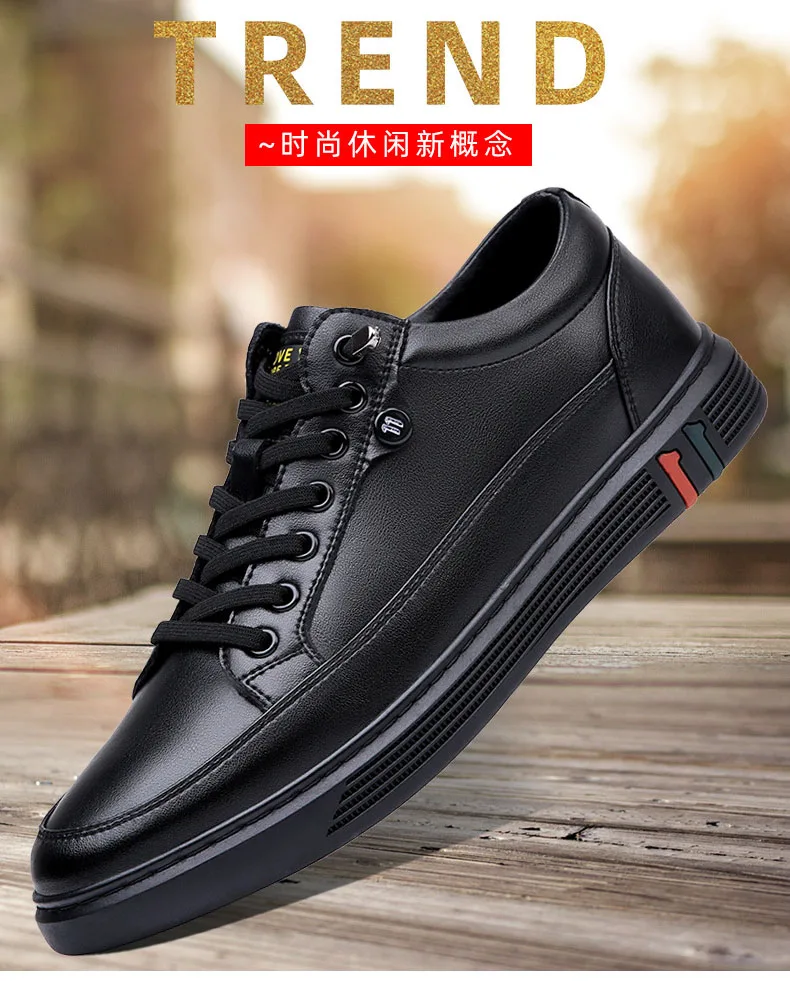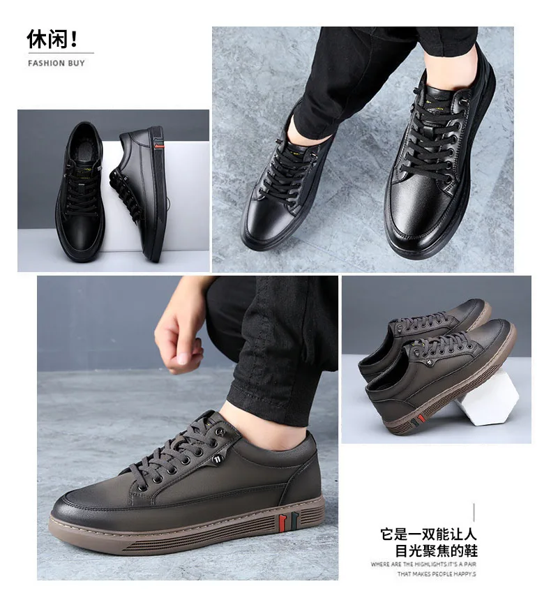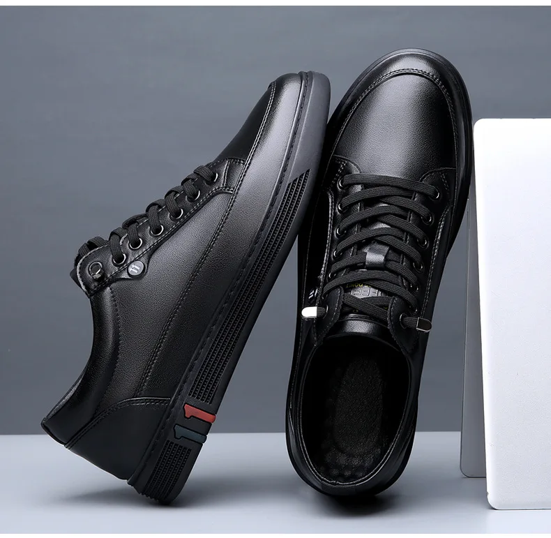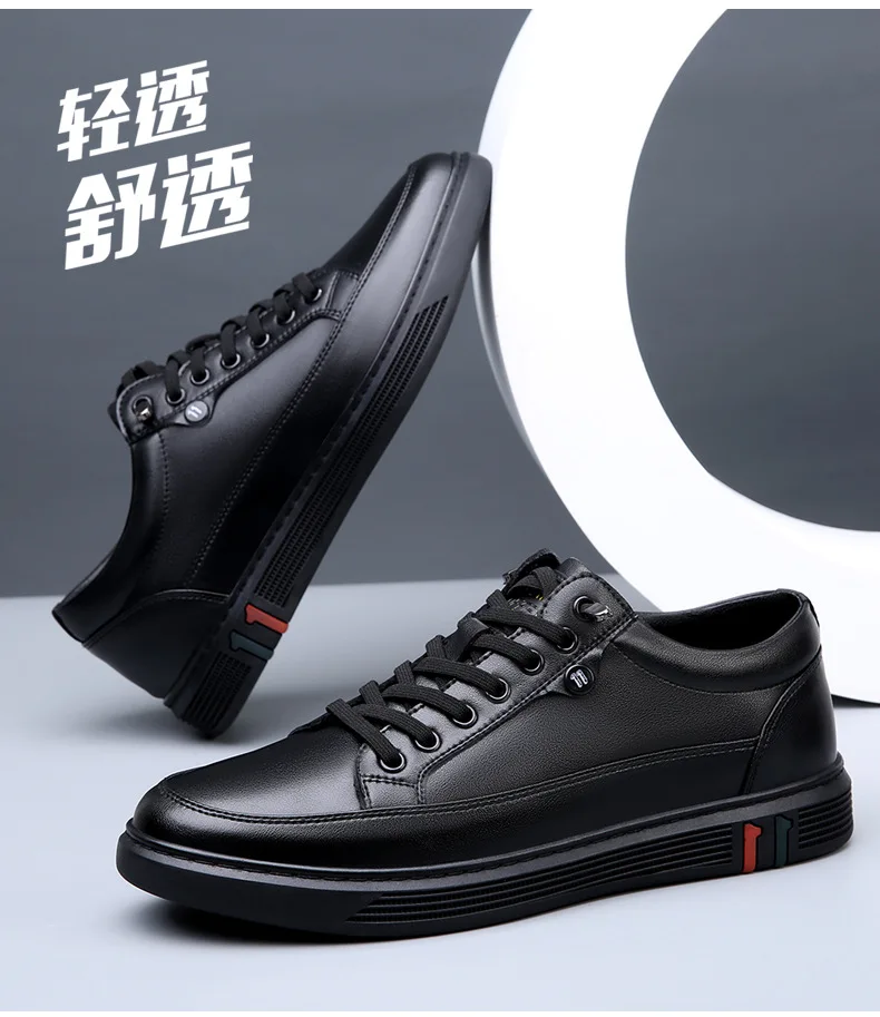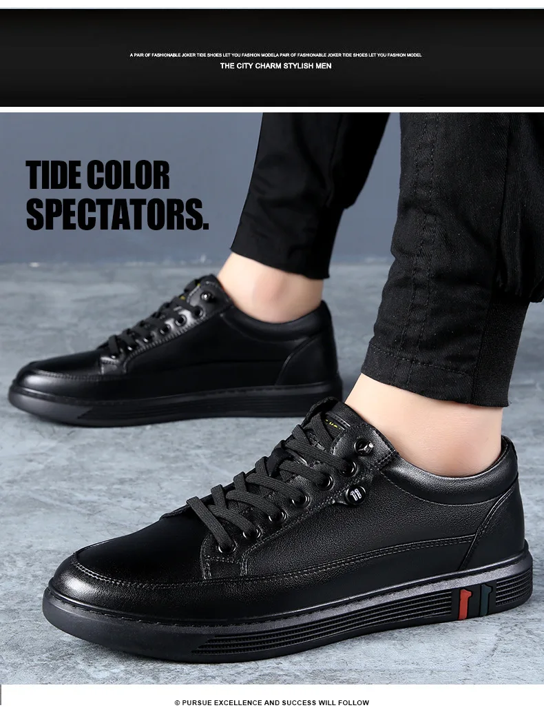 New Shoes for Men Genuine Leather Casual Shoes Spring Autumn Cool Black Flat Skateboard Shoes Youth Fashion Slip-on Sneakers