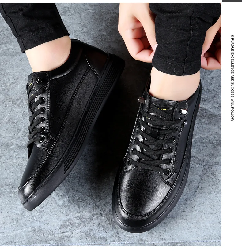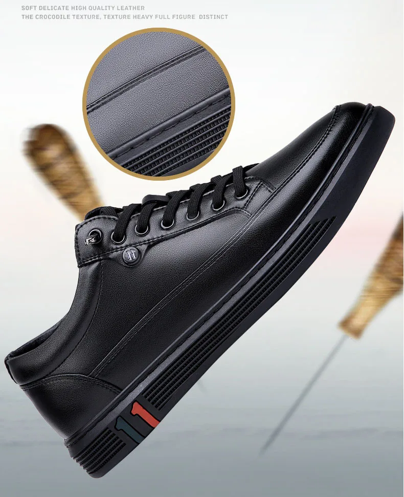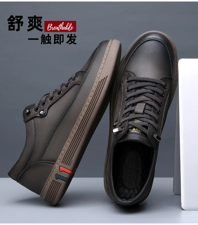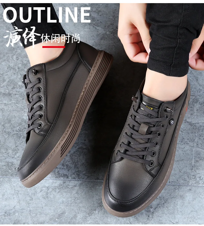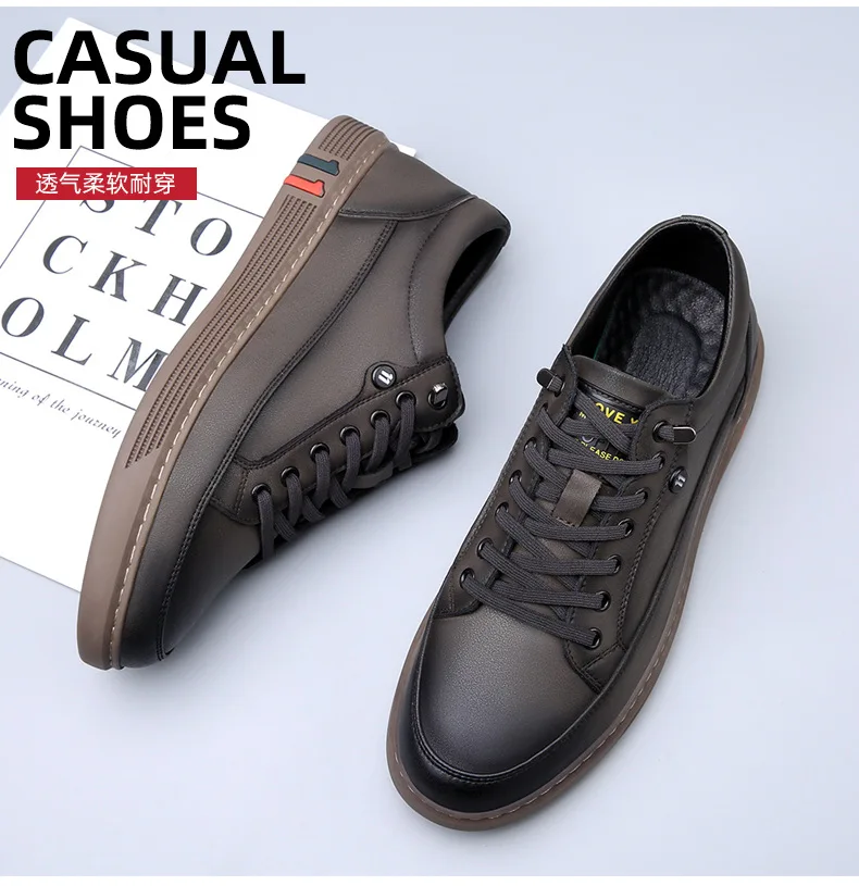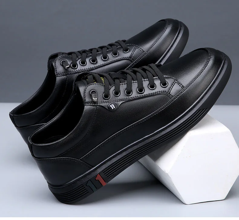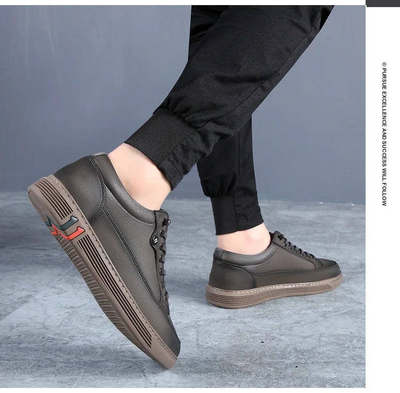 New Shoes for Men Genuine Leather Casual Shoes Spring Autumn Cool Black Flat Skateboard Shoes Youth Fashion Slip-on Sneakers
