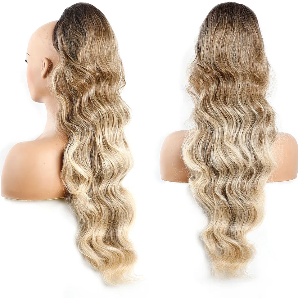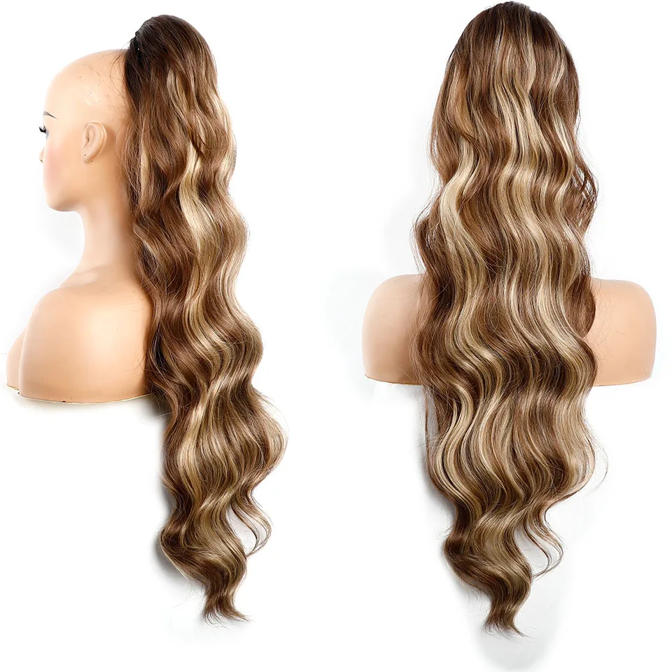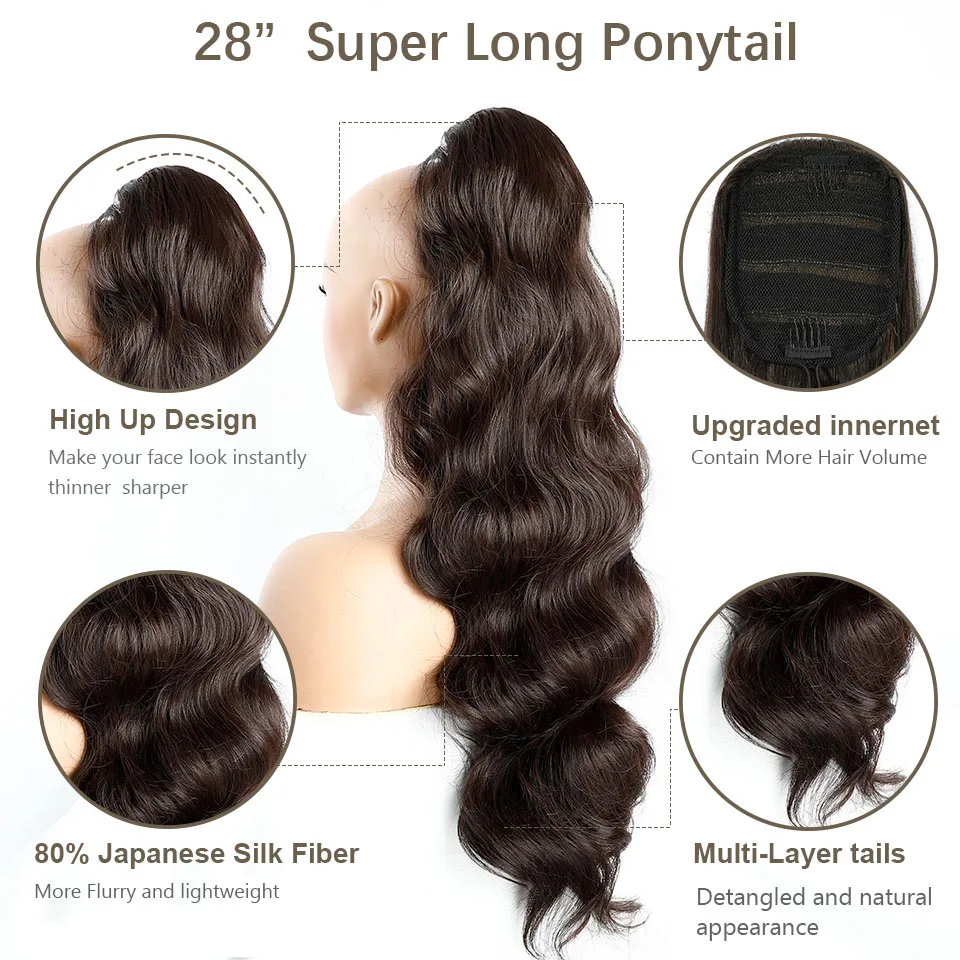 Ponytail Extension Body Wave Drawstring Ponytail Extension 28'' Long Wavy Synthetic Ponytail Hair Extension Clip in Hairpieces