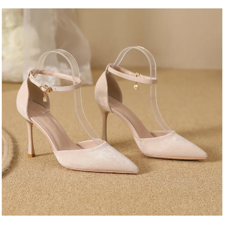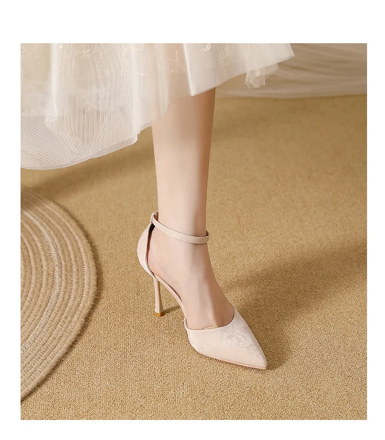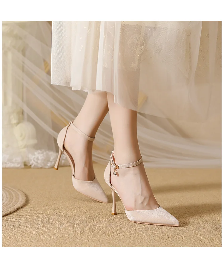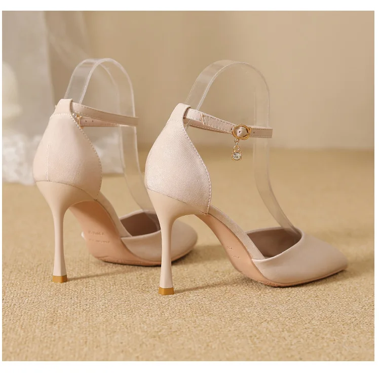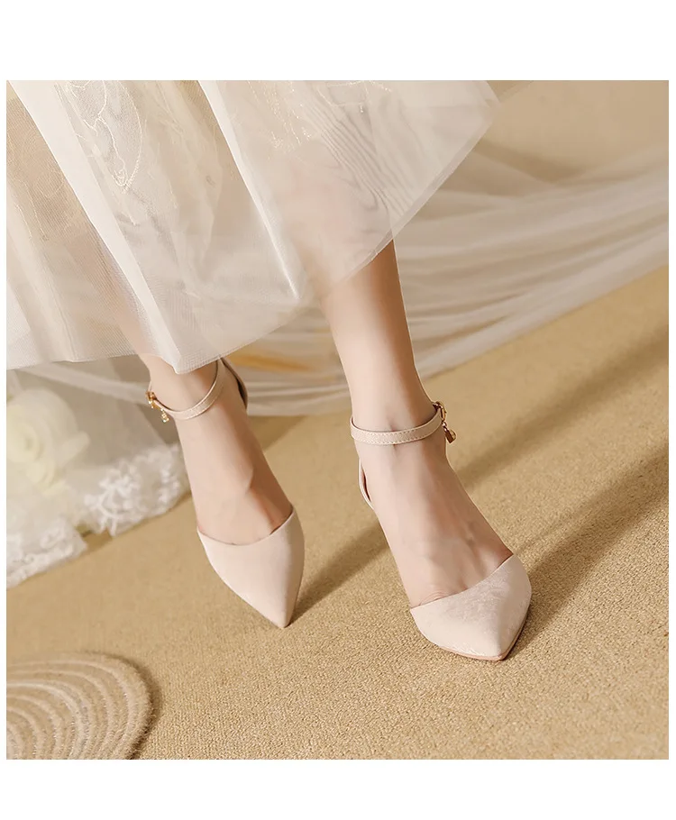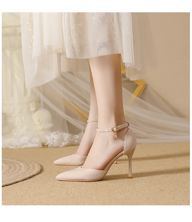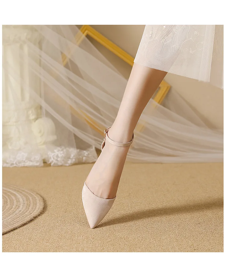 Small Size 30-44 Women High Heel Shoes Suede Thin Heels Ankle Strap Solid Color Point Toe Black Shoes