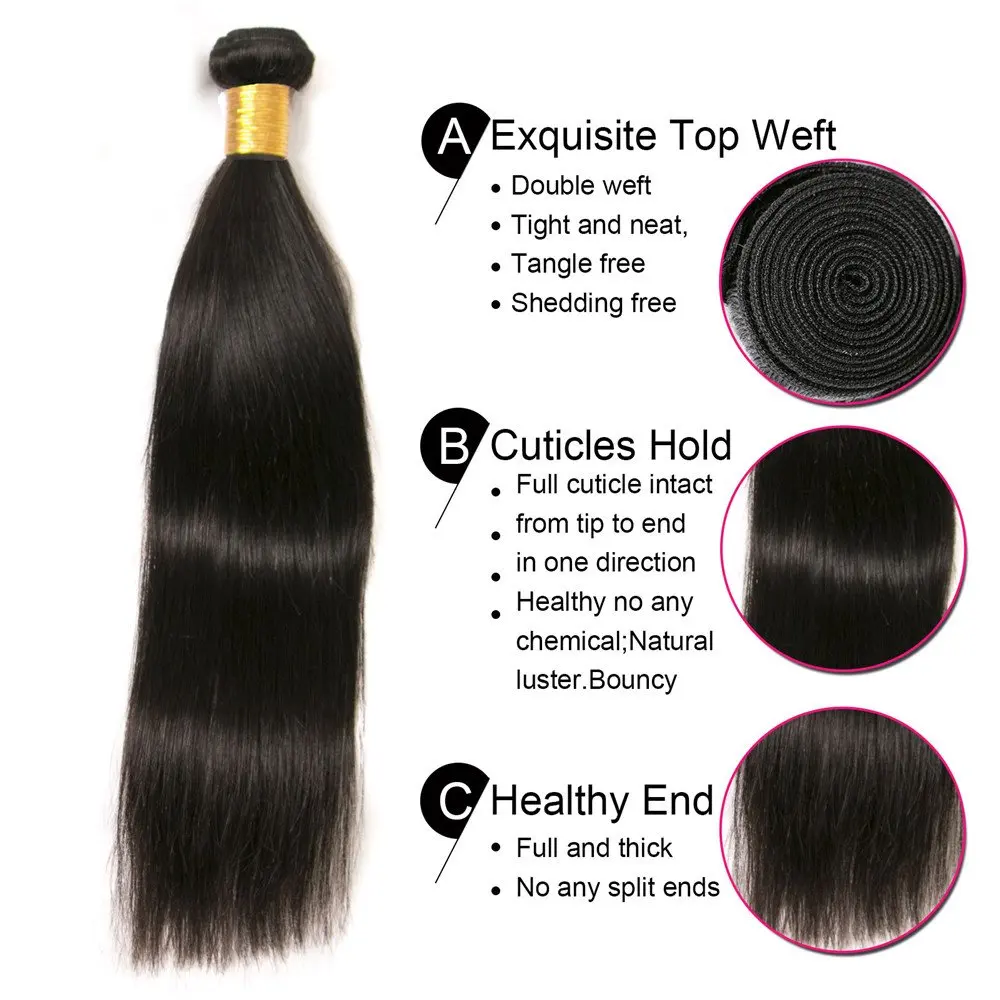 Straight Human Hair Bundles 1/3/4 Piece Brazilian Human Hair Extension Natural Weave Black 1B 24 26 28 30 Inch for Black Women