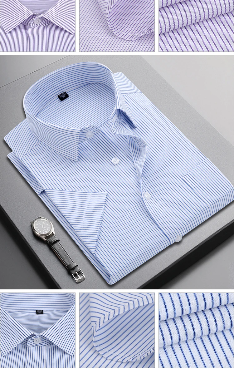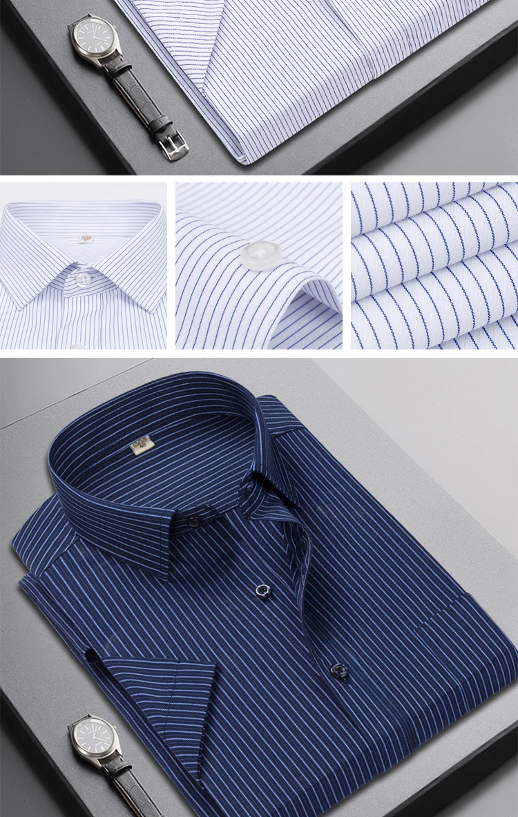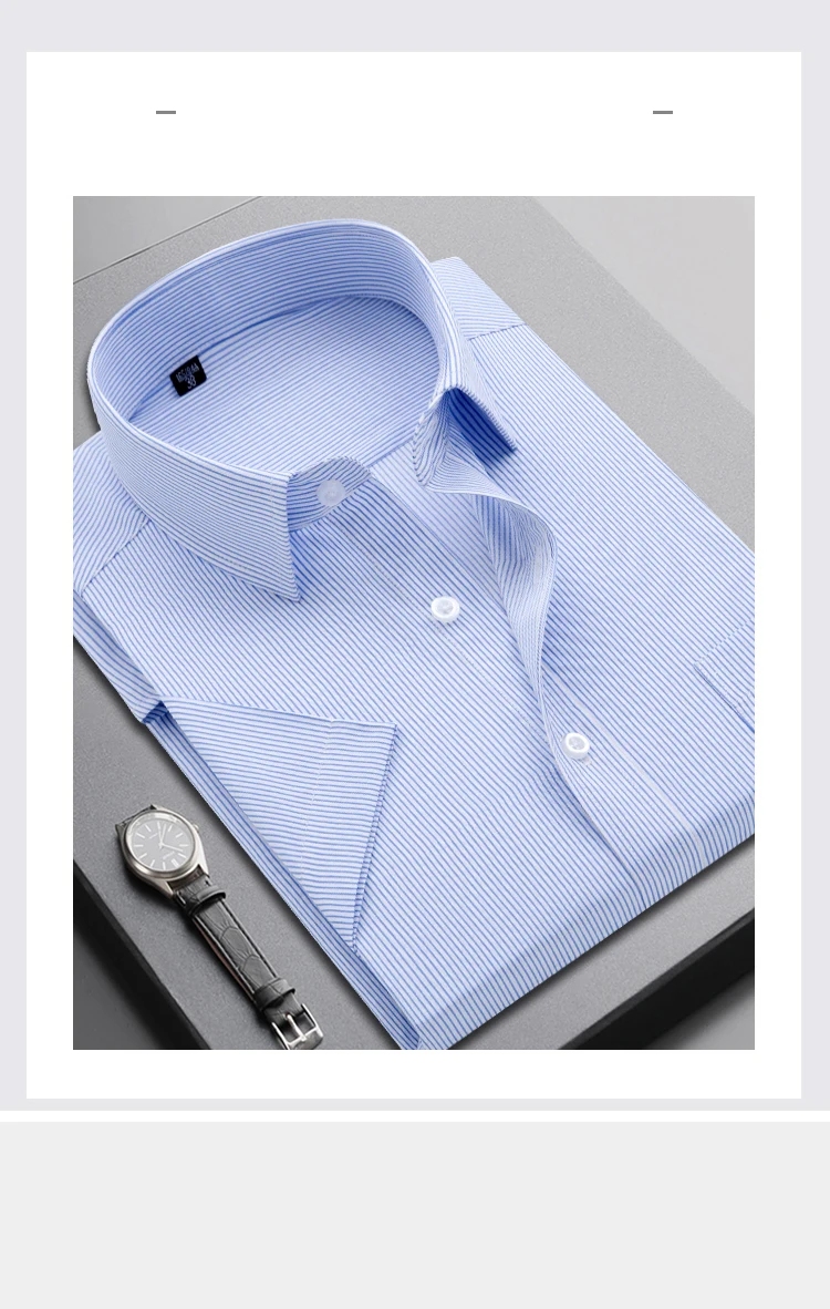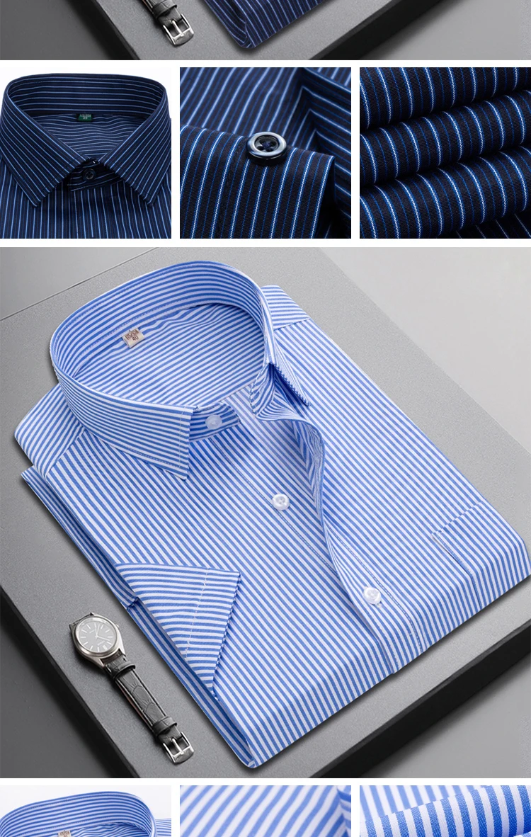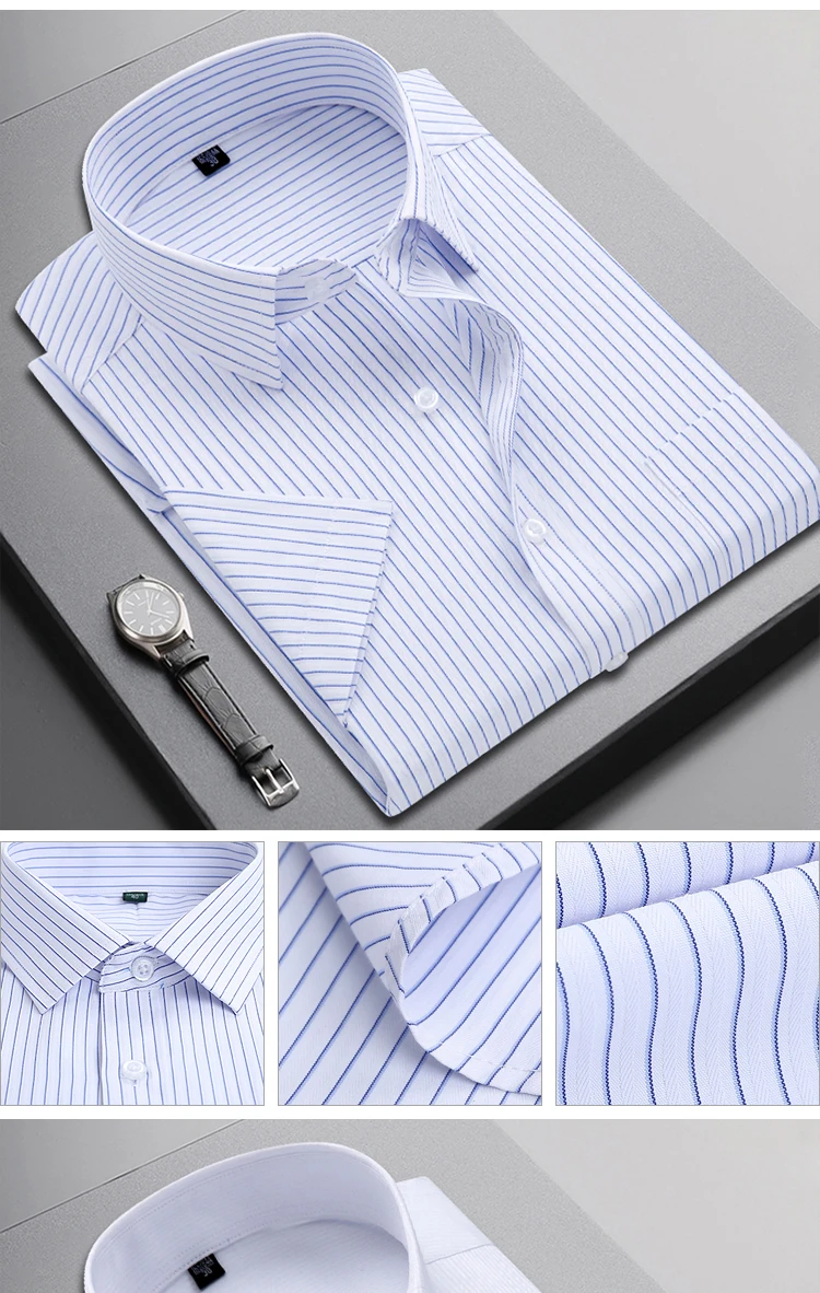 Summer Short-sleeved Men's Stripe Shirt Slim Business Classic Lapel Fashion Male Formal Work Shirt Brand Clothing M-5XL