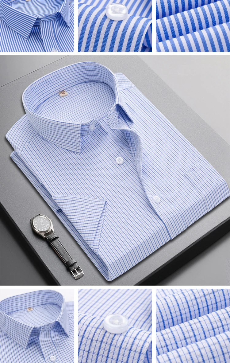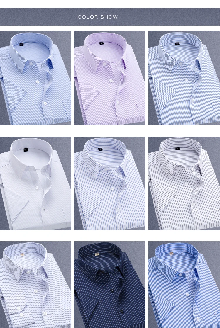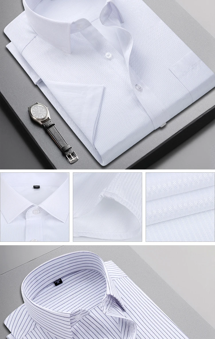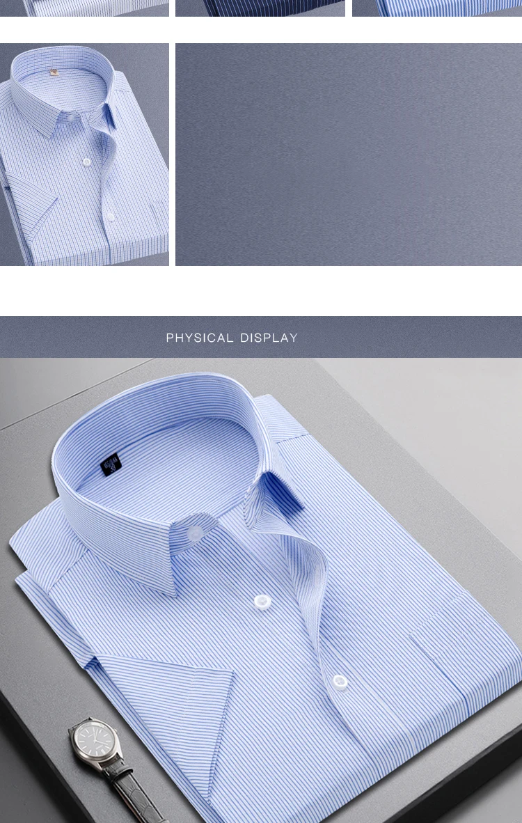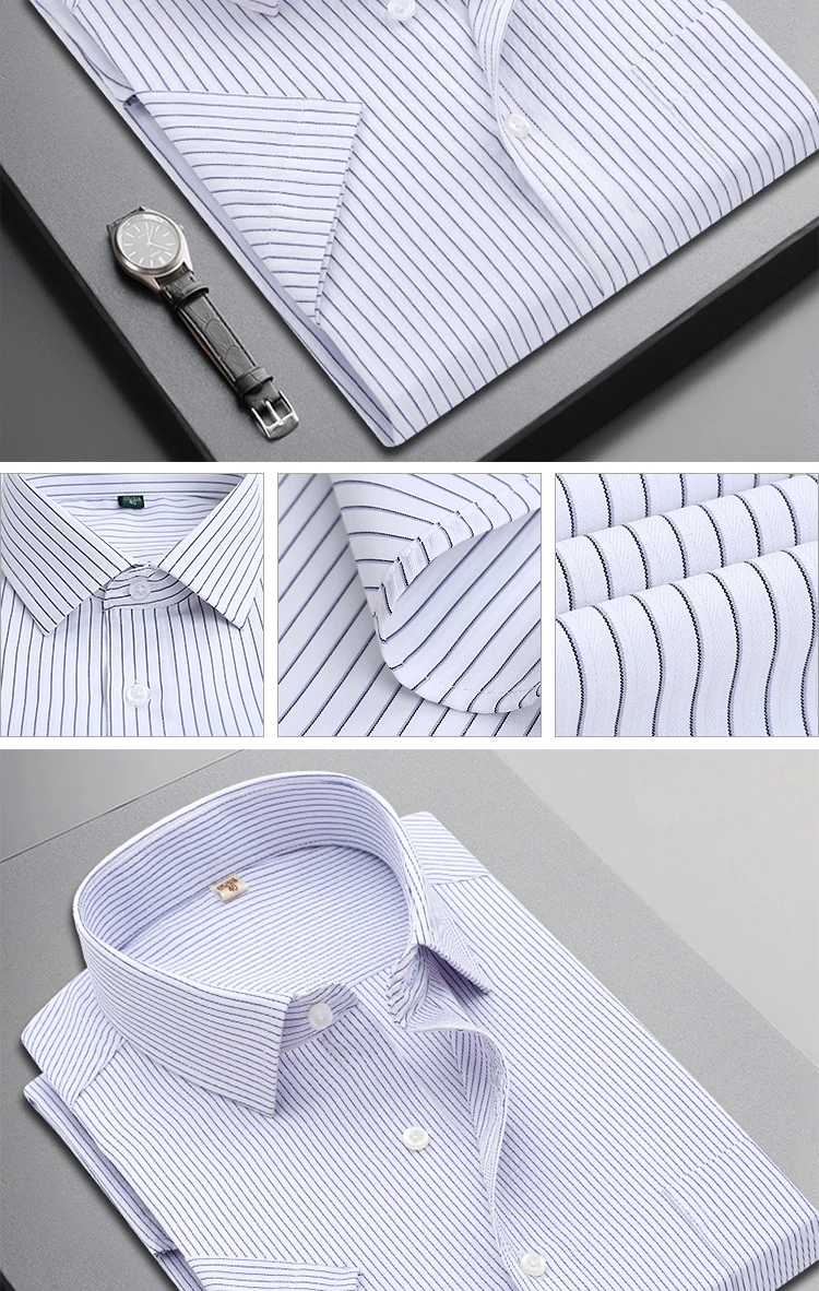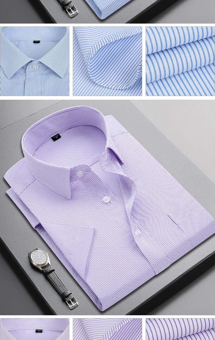 Summer Short-sleeved Men's Stripe Shirt Slim Business Classic Lapel Fashion Male Formal Work Shirt Brand Clothing M-5XL