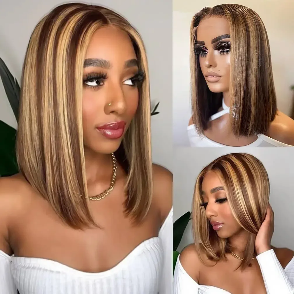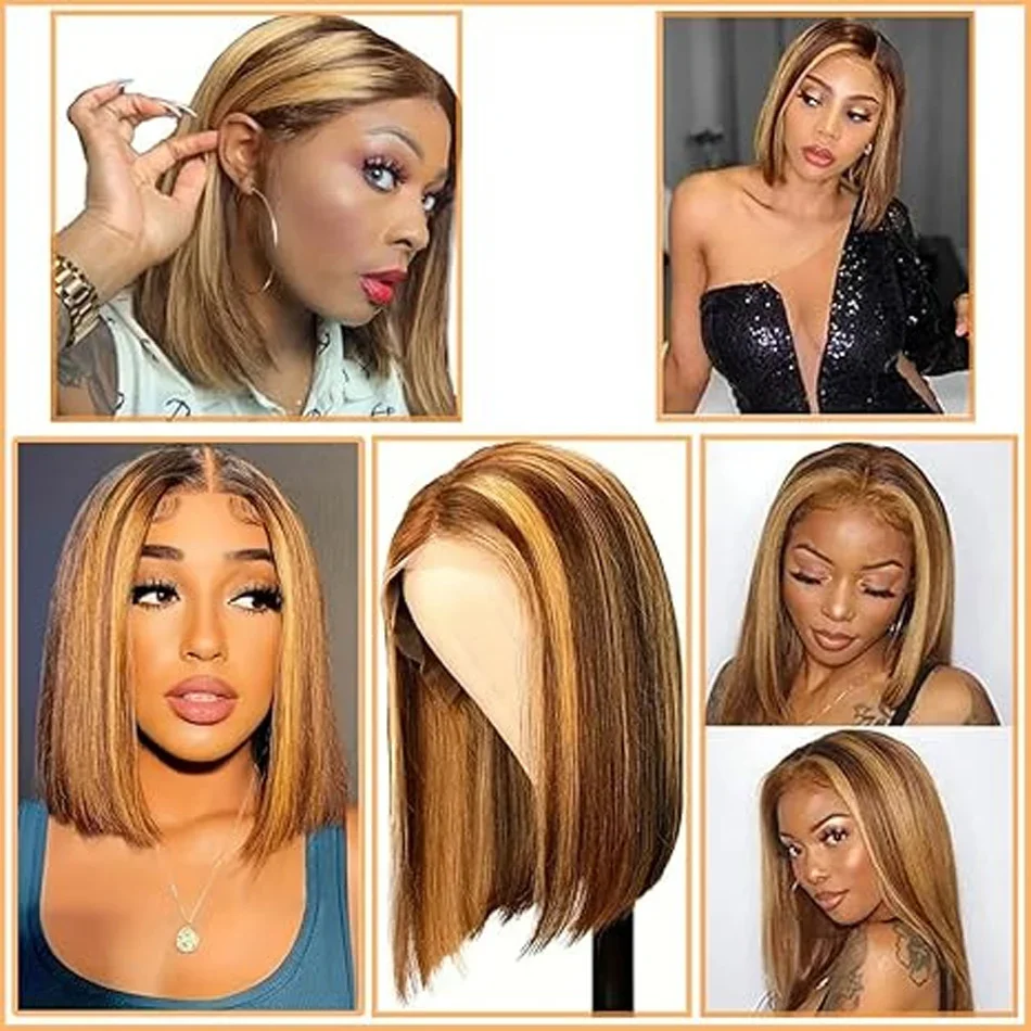 T Part Lace Front Bob Wigs 4/27 Honey Blonde Straight Short Bob Wig Bob Wig Human Hair Bob Lace Front Wigs Human Hair