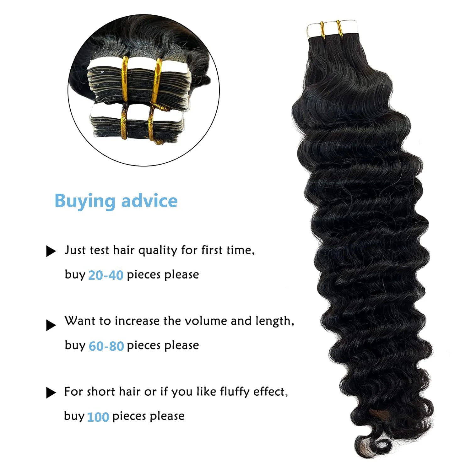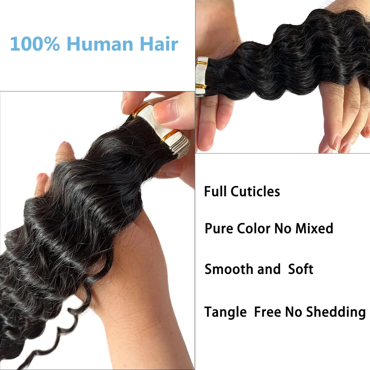 Water Wave Tape In Human Hair Extensions Curly Skin Weft Adhesive Natural Black Deep Wave Tape Extensions Hair For Salon 2.5G/Pc