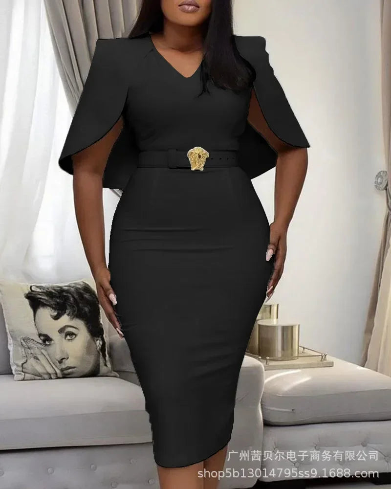 Women Dress Fashion 2023 White Cloak Short Sleeve Skinny Professional Dress for Women